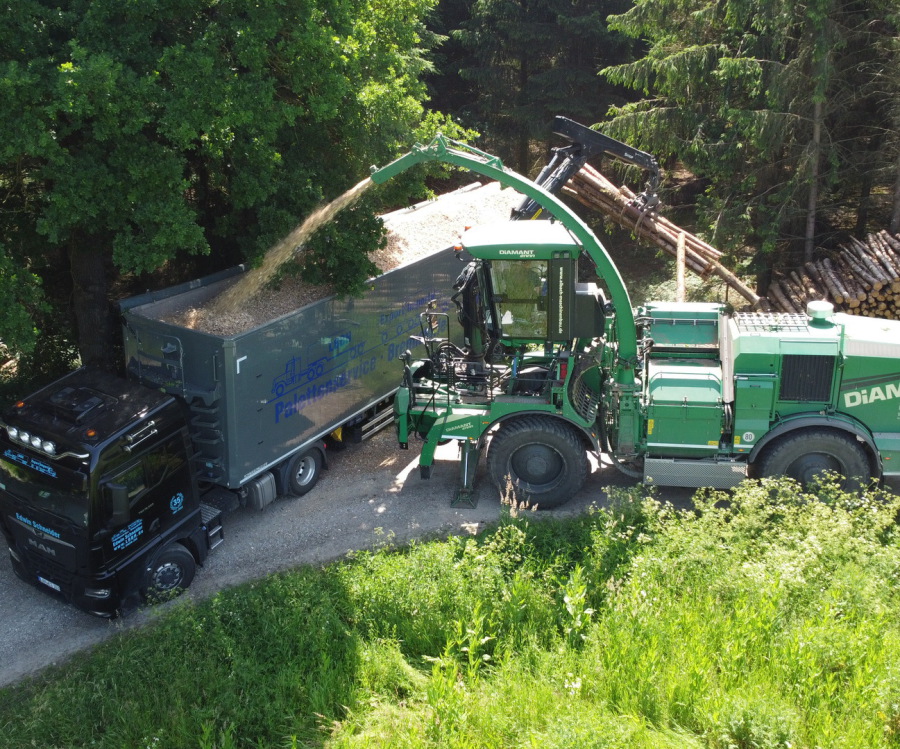 - produziert Hackschnitzel aus Stammholz und Waldrestholz